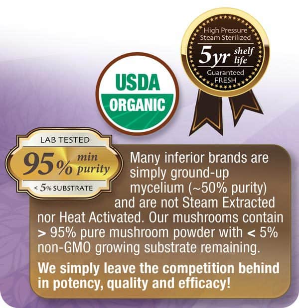 Steam-Activated & Micronized for uptake; not just ground mycelium.